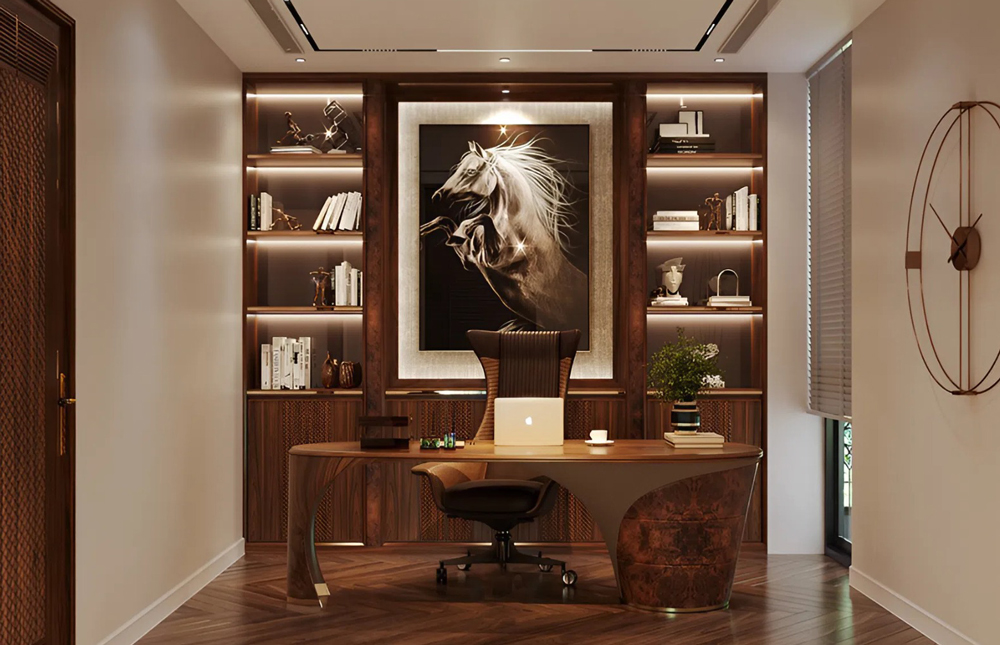 Sở hữu những đường vân gỗ tuyệt đẹp và màu sắc trầm ấm cuốn hút, bàn làm việc gỗ óc chó sẽ mang đến một không gian làm việc hoàn hảo. Ngoài ra, chiếc bàn làm việc còn giúp gia chủ toát lên vị thế chắc chắn, vai trò nổi bật cũng như thể hiện gu thẩm mỹ tuyệt vời.