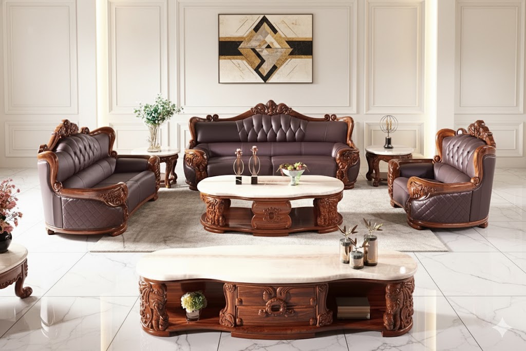 Trên thị trường nội thất cao cấp, sofa gỗ óc chó không chỉ được đánh giá cao về chất lượng và độ bền mà còn gây ấn tượng bởi đa dạng kiểu dáng, phong cách thiết kế tinh tế. Mỗi mẫu sofa đều mang trong mình một nét đặc trưng riêng, phù hợp với từng không gian và gu thẩm mỹ của gia chủ. Dưới đây là những kiểu dáng sofa gỗ óc chó thịnh hành nhất hiện nay, được nhiều khách hàng lựa chọn cho phòng khách sang trọng và hiện đại.