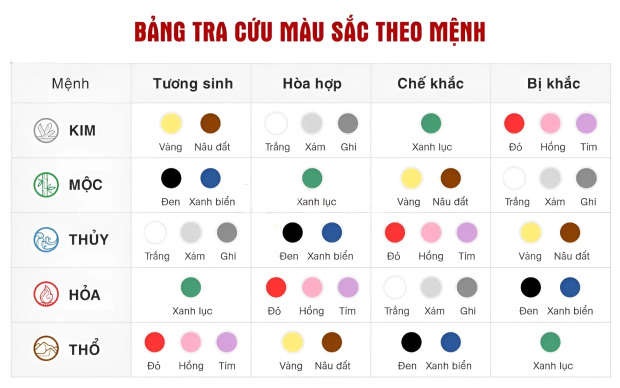 - Màu sắc bản mệnh (Thổ) : Vàng, nâu đất