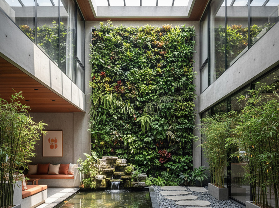 - Tiểu cảnh sân vườn, vườn tường cây xanh: Giải pháp tối ưu cho nhà phố, nhà ống hoặc không gian nhỏ, mang mảng xanh vào nhà một cách thông minh.