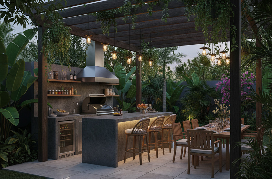 - Khu vực bếp nướng BBQ/bar ngoài trời: Đối với những người thích tổ chức tiệc tùng hoặc tụ tập bạn bè, khu vực này sẽ tăng thêm tính tiện ích và sự gắn kết.