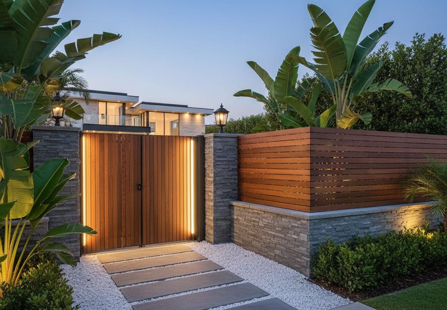 - Cổng và hàng rào: Không chỉ đảm bảo an ninh, cổng và hàng rào được thiết kế đẹp mắt còn góp phần tạo nên ấn tượng ban đầu cho tổng thể cảnh quan.